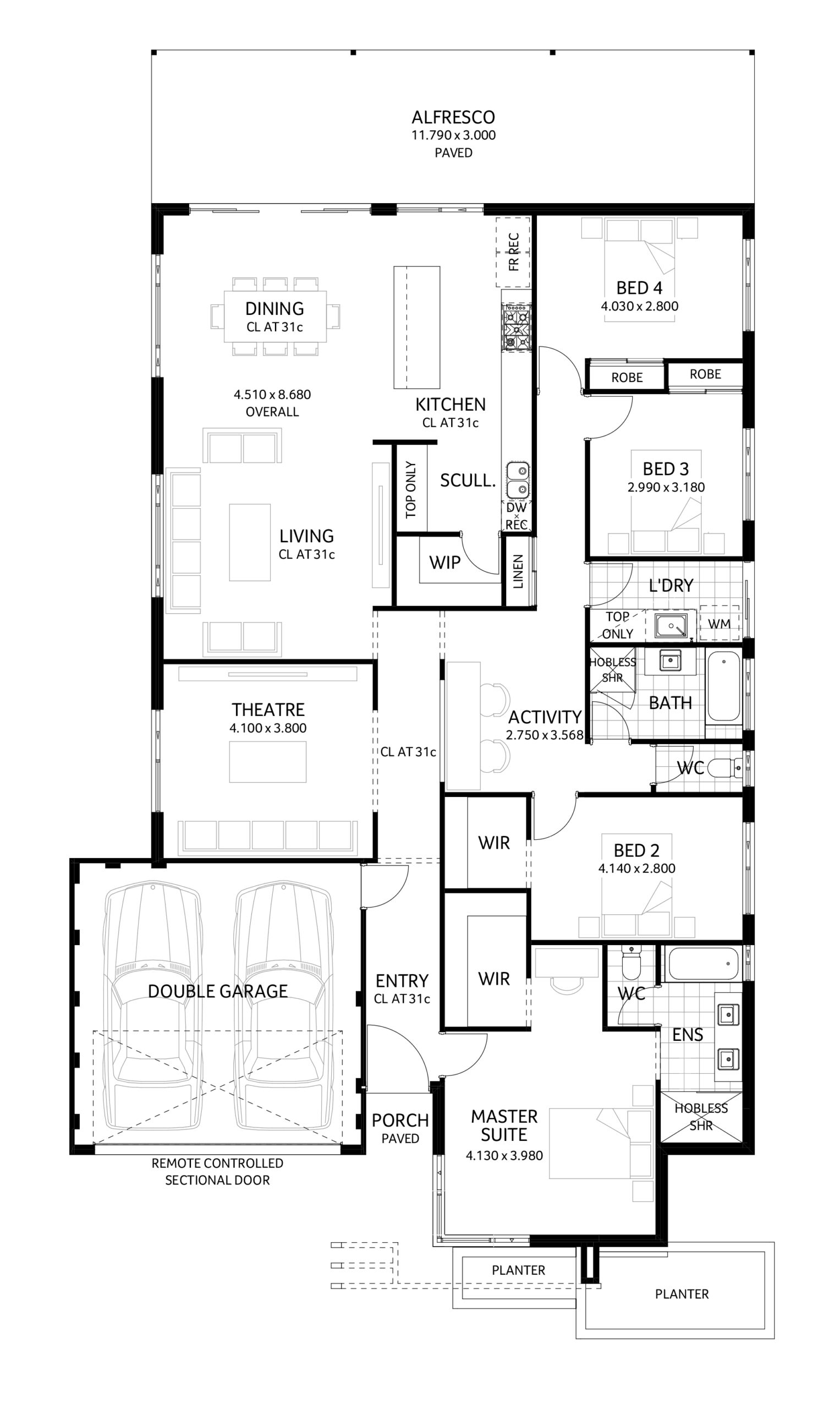 The Koombana Bay is modern Australian living inside and out. Its four bedrooms and two bathrooms provide enough space for growing families, along with its ample storage, home theatre and activity room. The oversize alfresco at the rear caters to those who love to entertain and relax in style.