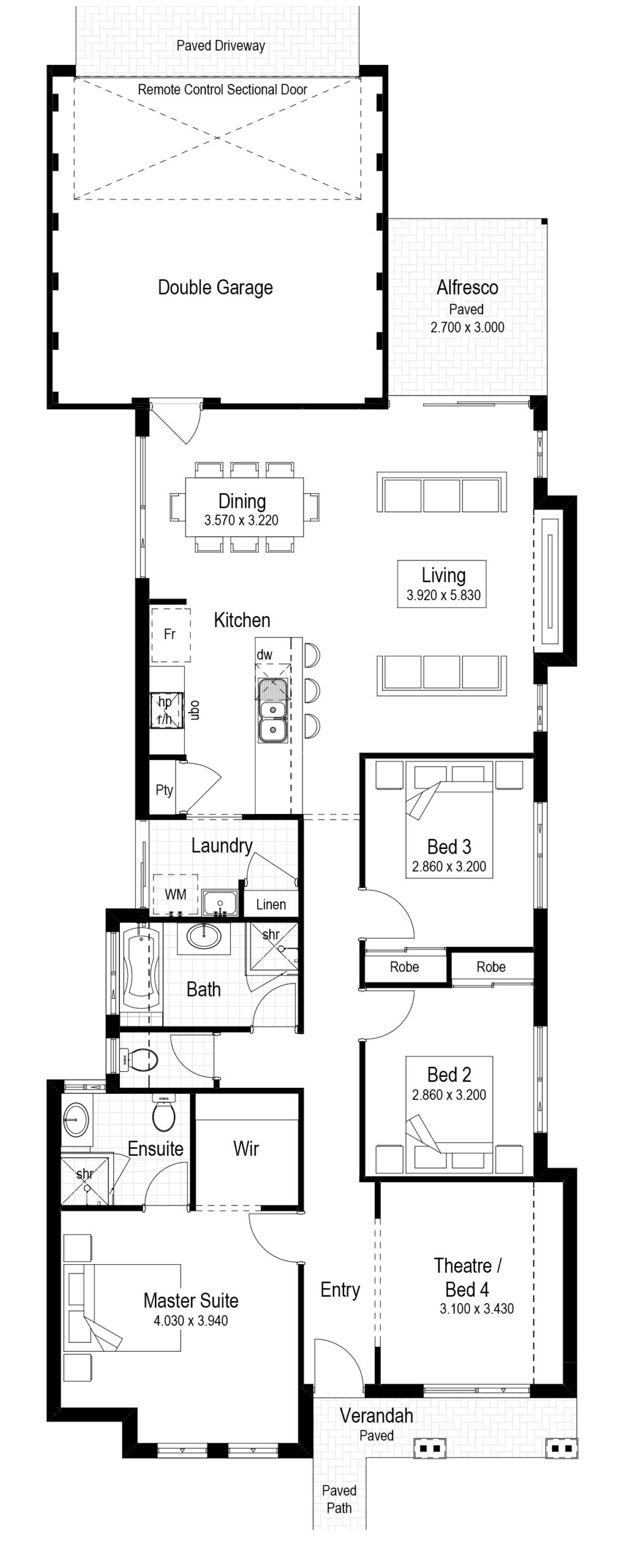 The ideal home for a narrow lot. The Longreach has been designed to included all the functionality a modern family needs. Sleeping quarters are located at the front of the home leaving the rear for entertaining.