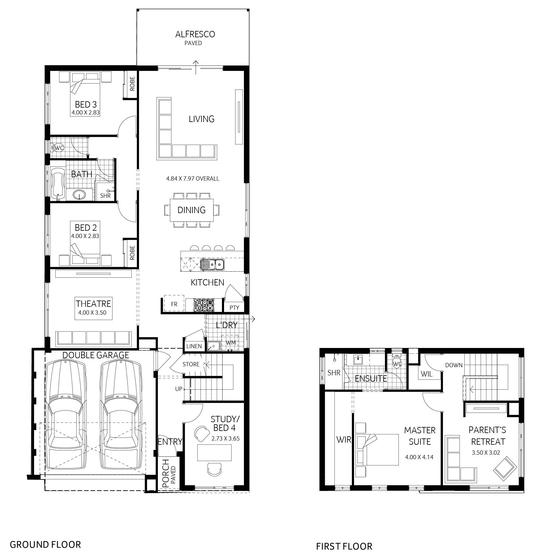 In today’s market, it can be tough to find a home design that fits on our ever decreasing block sizes, provides enough space and privacy for teens and parents alike, and does all of the above without breaking the bank. Starting from the top, an upstairs dedicated to parents with separate retreat, generous master suite and walk in robe. Downstairs, 2 large minor bedrooms with built in robes, a third minor bedroom or study at the front of the home, theatre, plus open plan kitchen dining and living, opening out on to a paved alfresco. The Olympus is a heavenly home fit for everyone.