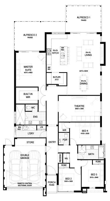 A spacious theatre is ideal for movie nights, while the open-plan living and dining connect to a stunning kitchen complete with high-quality appliances, a wrap-around bench, kitchen island and butler’s pantry. This zone flows seamlessly to the outdoors, where a double alfresco is designed for outdoor dining and entertaining.