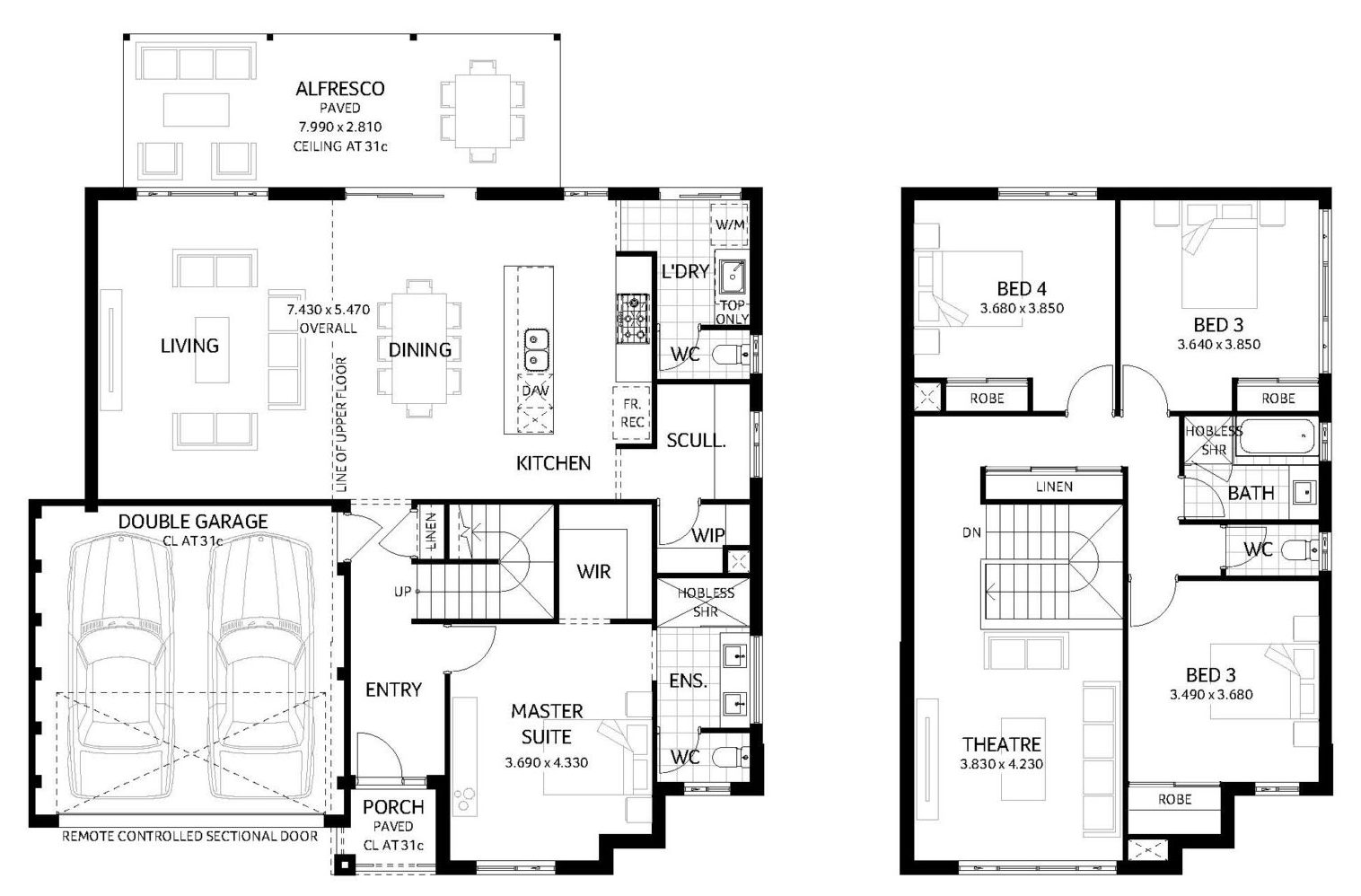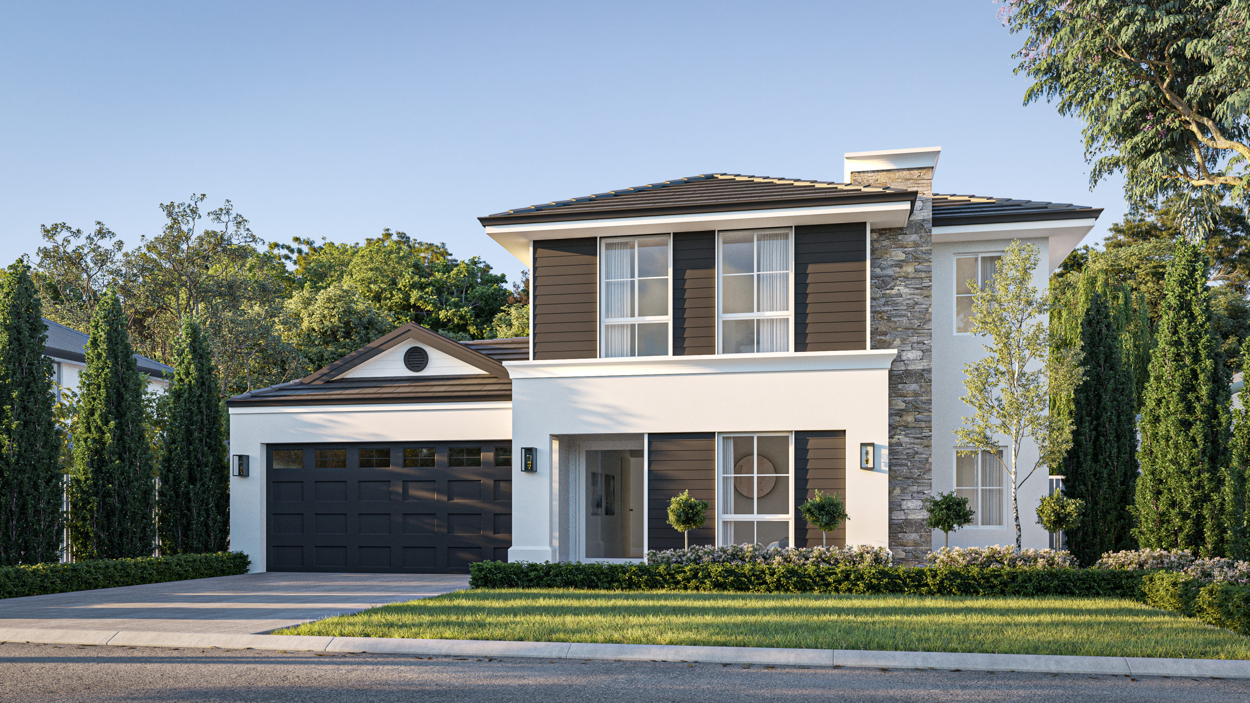 The Stony Brook is a stunning two-storey home that makes a bold statement with its feature stonework and cladding. The colours are simple, but perfectly suited to the Hamptons style home. On the ground floor is the master suite, living, dining, kitchen and laundry. Upstairs is the perfect retreat for the kids with three bedrooms and a home theatre.