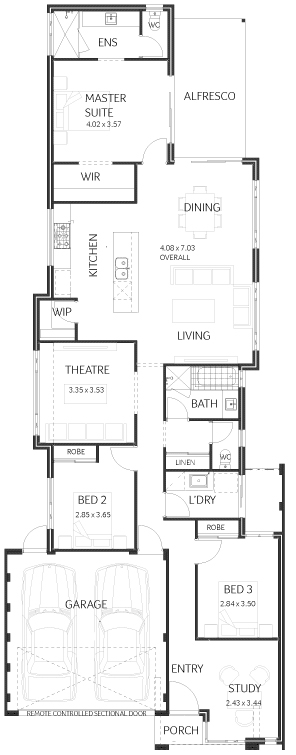 The Tramonti is a compact home design that boasts big features including study, home theatre and alfresco area. The minor bedrooms are located at the front of the home with the Master Suite situated at the rear of the home for optimal privacy.